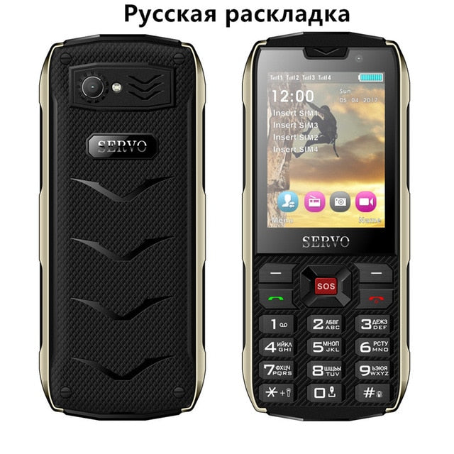 SERVO H8 Mobile Phone 2.8inch 4 SIM card 4 standby Bluetooth Flashlight GPRS 3000mAh Power Bank Phone Russian Language keyboard